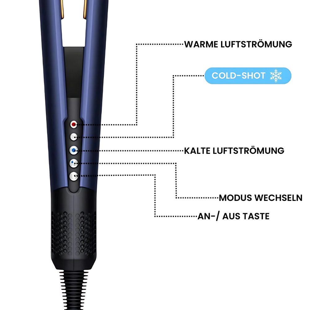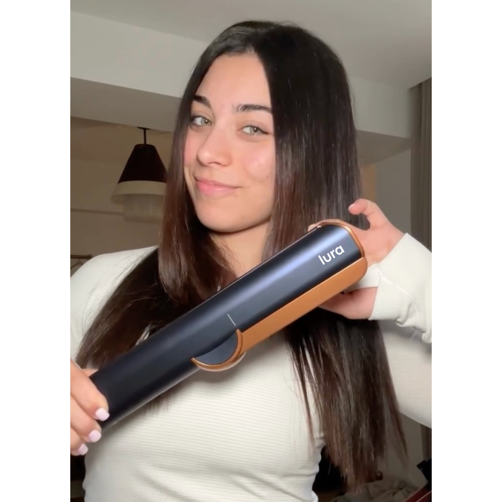 Der Lura - 2 in 1 Haarglätter nutzt keinen Hitzekontakt, sondern einen starken Luftstrom, der dein Haar gleichzeitig trocknet & glättet. So kannst du dein Haar schnell und schonend stylen, ohne es zu schädigen.