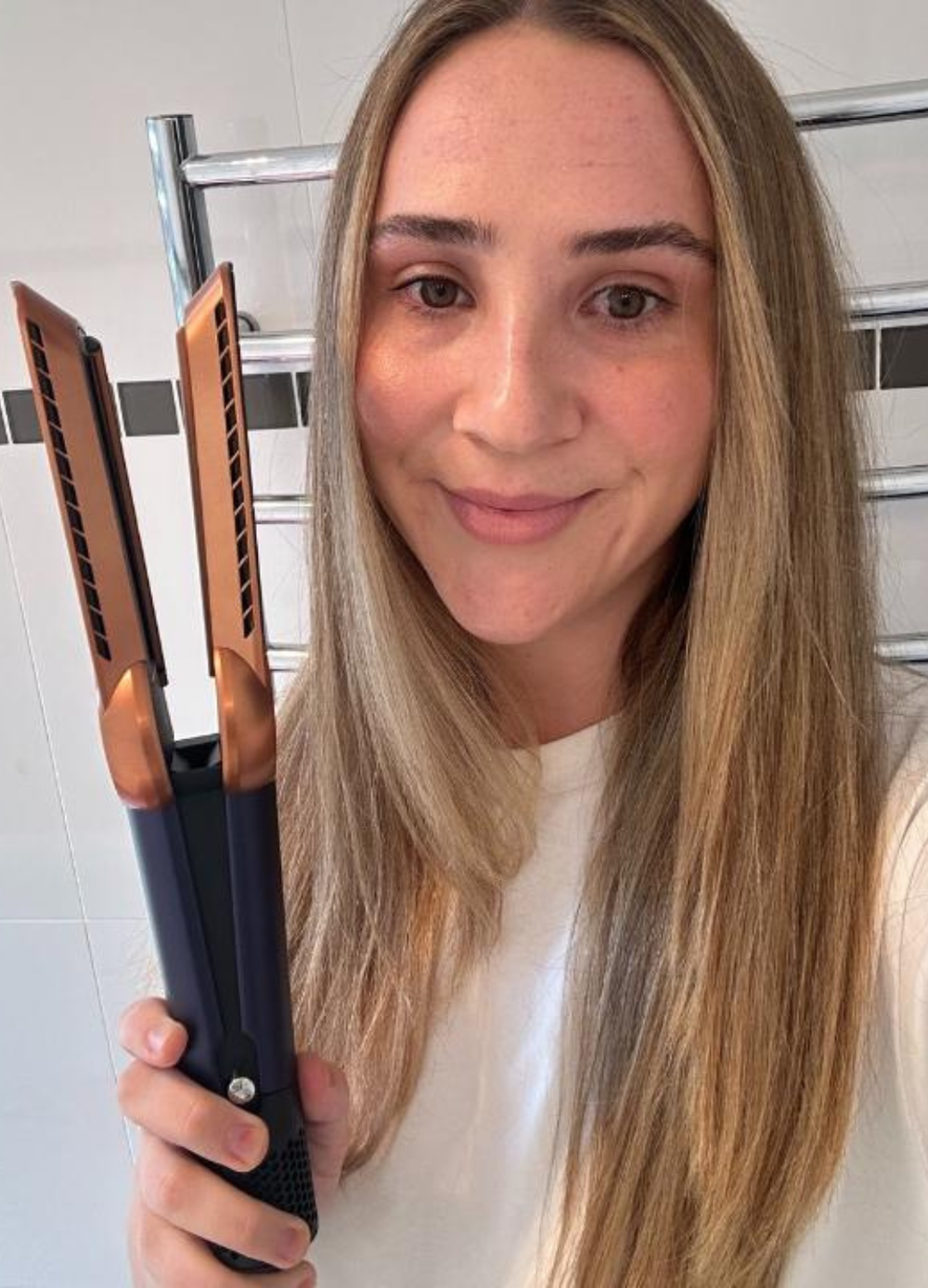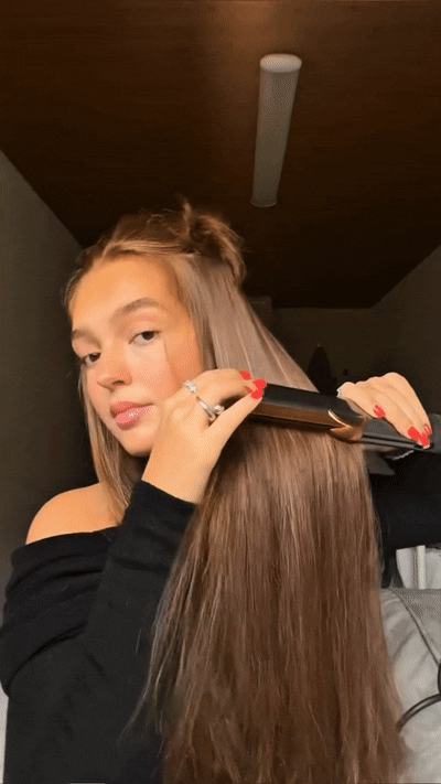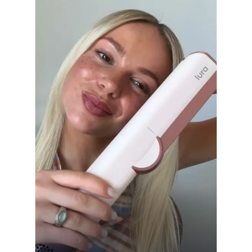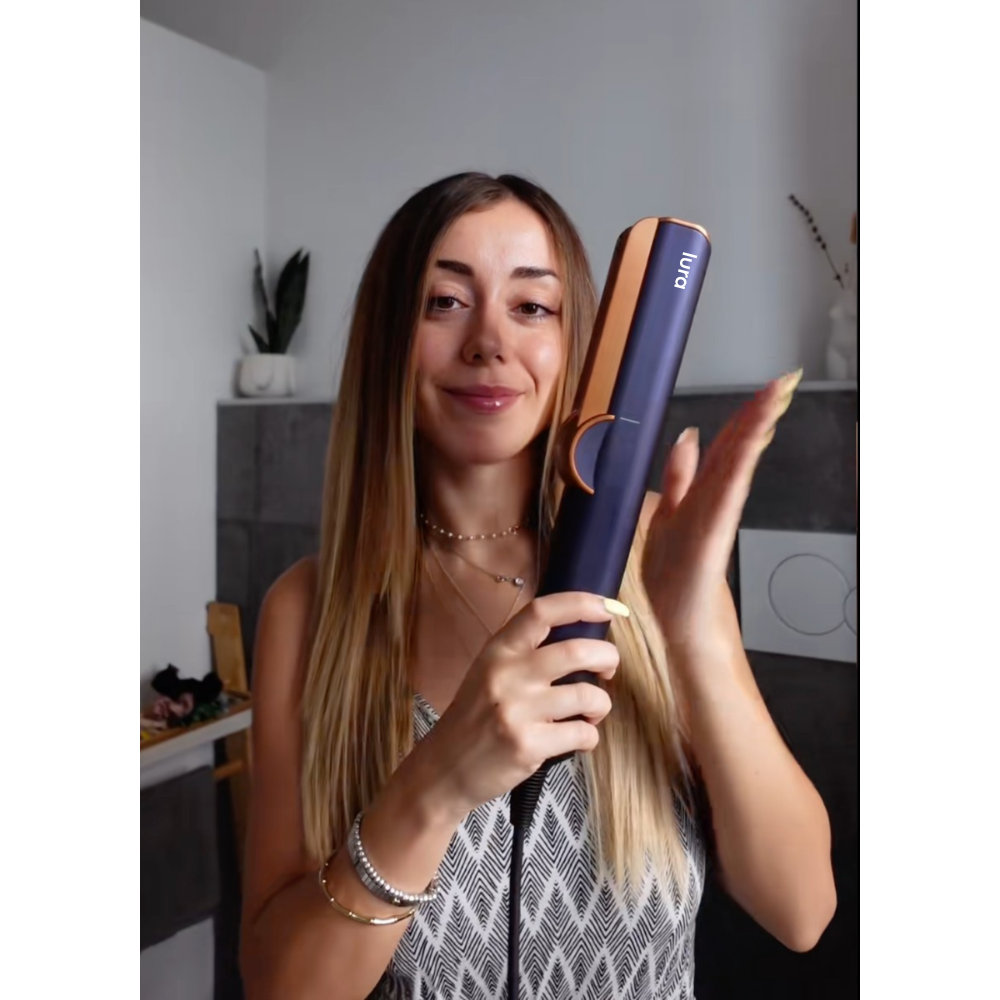 Der Lura - 2 in 1 Haarglätter ist ein innovativer Haarglätter, der sowohl Haare trocknet als auch glättet. Mithilfe von präzisen Luftströmen wird das Haar sanft gestylt, ohne extreme Hitze zu verwenden, was es schonender für das Haar macht.