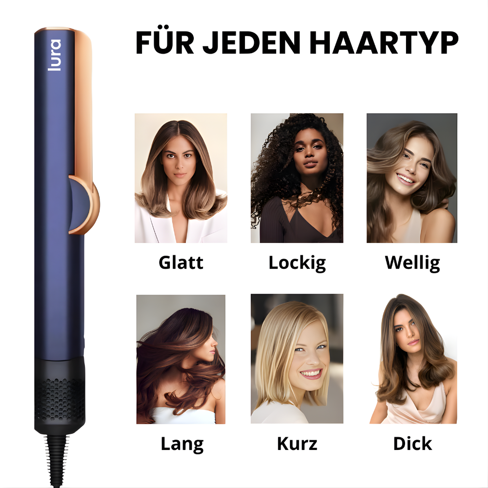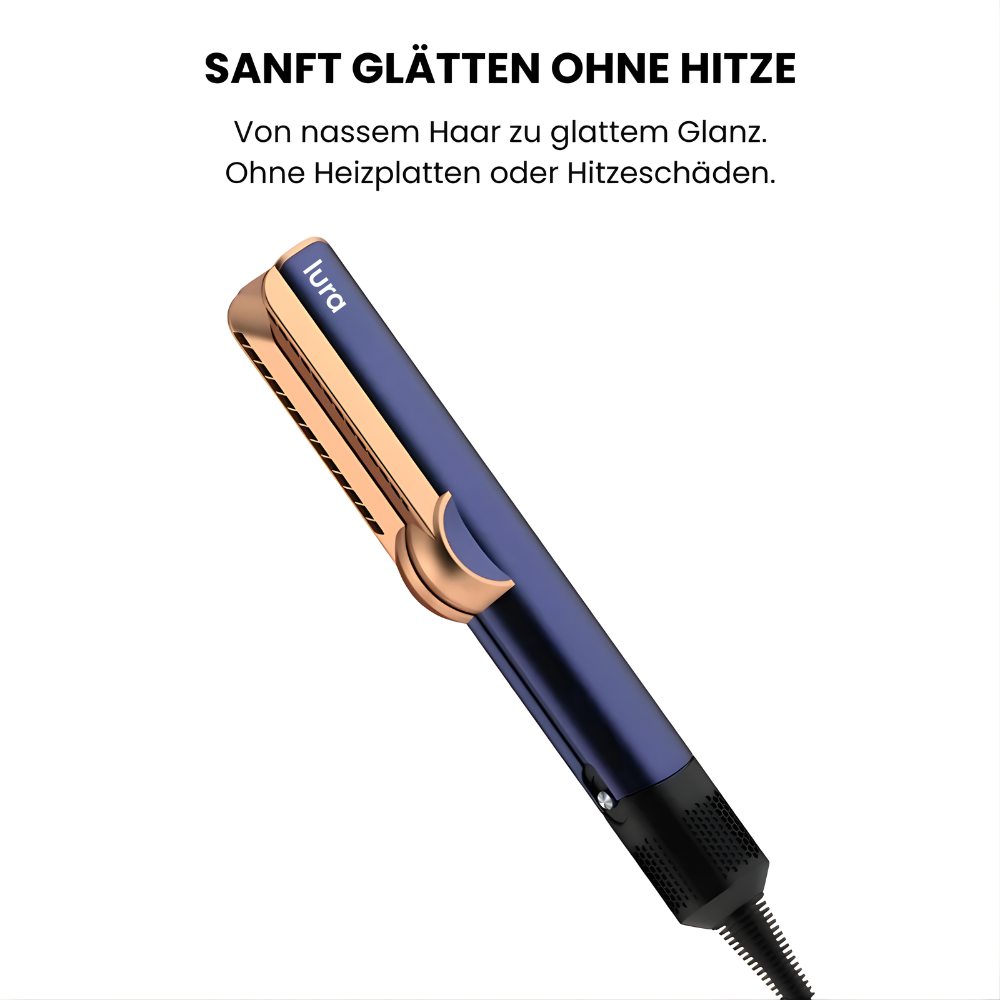 Style dein Haar von nass bis trocken mit kraftvoller Luft , ohne Hitze und ohne Beschädigung . Vereinfache deine Routine und erhalte in einem Schritt glattes, gesundes Haar mit dem Lura - 2 in 1 Haarglätter.
